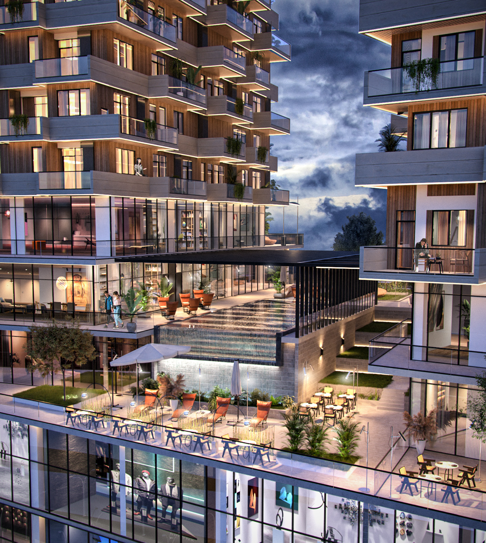 'შენობის პირველ სართულს დაიკავებს სავაჭრო სივრცეები. ოთხ სართულზე განთავსდება საოფისე ფართები, აღნიშნულ სართულებზე ასევე განთავსდება აუზი, სამი სახის სპა, საბავშვო ბაღი და ფიტნეს დარბაზი, სამუშაო დასხვადასხვა დანიშნულების სივრცეები. დანარჩენი სართულები წარმოადგენსსაცხოვრებელ ფართებს. დამონტაჟდება 8 ლიფტი. შენობის საანგარიშო სეისმურობა შეადგენს 8 ბალს, რაც დამატებით უსაფრთხოების გარანტია.სამუშაობის დასრულების ვადაა 2027 წლის გაზაფხული